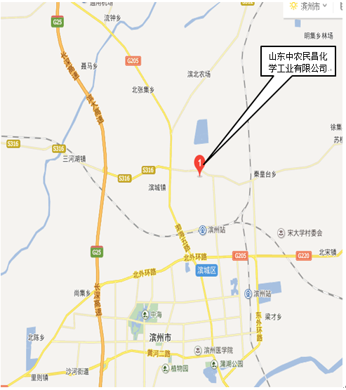 山東中農(nóng)民昌化學(xué)工業(yè)有限公司3000t/aS-異丙甲草胺項(xiàng)目位于山東中禾化學(xué)有限公司廠區(qū)內(nèi),西側(cè)為山東友泰科技有限公司待建廠區(qū)(石油化工企業(yè));西側(cè)圍墻外0.5米處有一條南北向架空電力線(桿高12米);東側(cè)為山東中禾化學(xué)有限公司(非石油化工企業(yè))生產(chǎn)裝置,廠區(qū)東為鳳凰八路(園區(qū)道路),路東為山東濱農(nóng)科技有限公司廠區(qū)(非石油化工企業(yè));北側(cè)為梧桐十路(園區(qū)道路),路北為山東友泰科技有限公司廠區(qū)(石油化工企業(yè));南側(cè)為梧桐九路,路南為濱州市利美精細(xì)化工有限公司(石油化工企業(yè))和山東明大新材料有限公司(非石油化工企業(yè))。