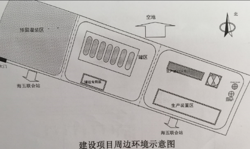 ?該項目在東營港經濟開發區的最北端,西南面為海五聯合站,與海五聯合站之間以消防車道相隔,消防車道以南為海五聯罐區,距離本項目裝置區最近的為一原油沉降罐,距離約30m,事故狀態下,海五聯罐區和本裝置會有一定的影響。本項目其余三面均為空地。東面和北面為海堤,距離最近海堤500m。